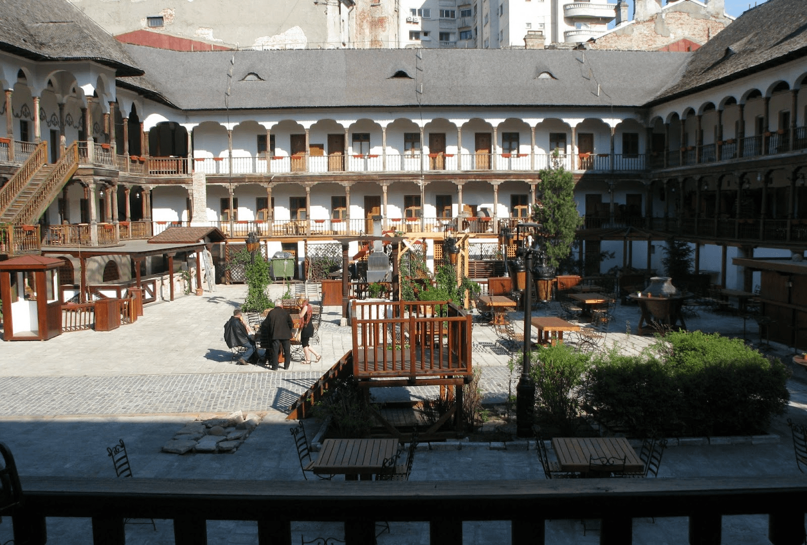 Bucureștiul este plin de locuri unde se poate savura bucătăria tradițională românească, dar unul dintre preferatele localnicilor și turiștilor este Hanu’ lui Manuc. Acest restaurant istoric, cu muzică tradițională și o curte interioară, servește mâncăruri clasice românești. Un loc ideal pentru a încerca preparate tradiționale, precum sarmale, mămăligă și mititei. Galeria cu arcade duble susținute de stâlpi din lemn, ce înconjoară curtea interioară, este inspirată din stilul vechi valah. Acesta este un rar vestigiu al arhitecturii populare din București.
